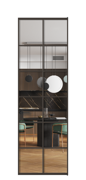 Двери Формато сочетаются с алюминиевыми перегородками Формато, стеновыми панелями Волховец и коллекциями межкомнатных дверей Планум Про, Вельвет.