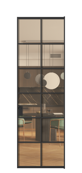 Минималистичный профиль повторяет форму профиля алюминиевых раздвижных перегородок Формато, что позволяет легко сочетать оба решения в одном пространстве.